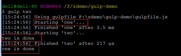 gulp.task("two", ["one"], function() {