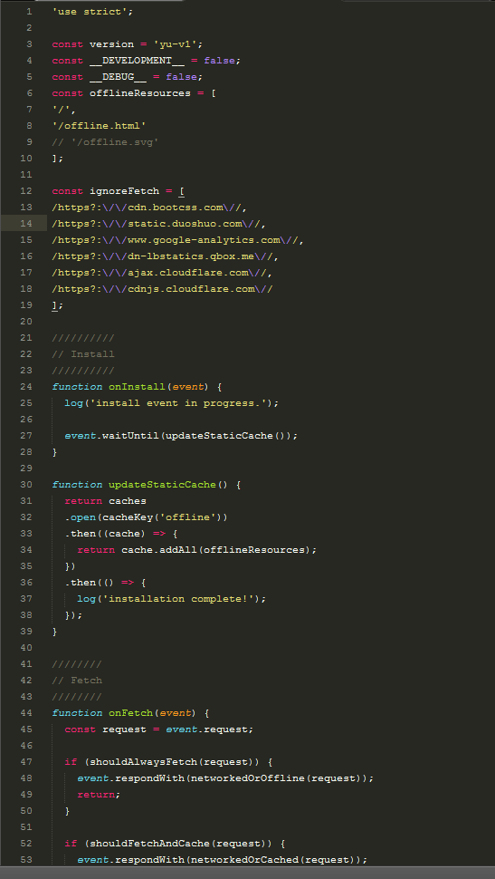 关于这个 service-worker.js 怎么写,具体可以查看 API ,MDN Service Worker API。