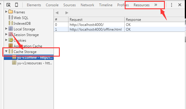 或者在浏览器的开发者工具中也可以详细的查看 service worker 的缓存。