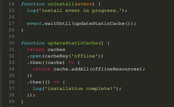 install 是安装一个 service worker 缓存,使用方法可以是这样:1